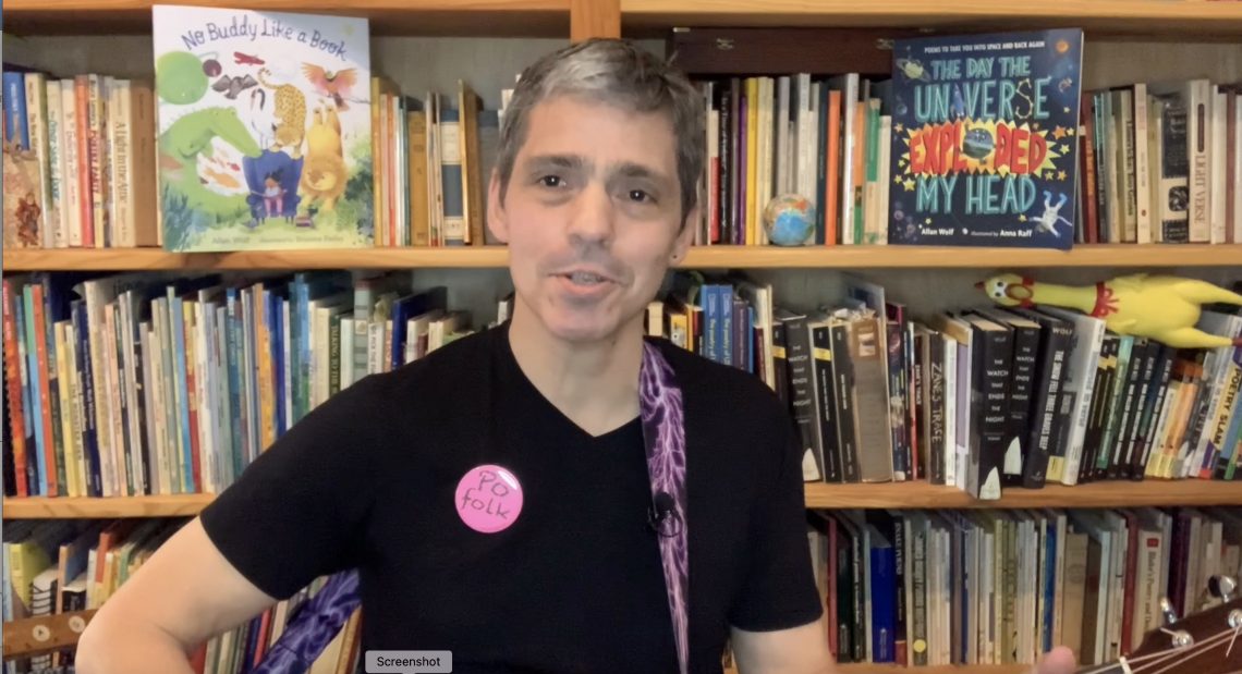 Called the godfather of the poetry slam in the Southeast, acclaimed writer Allan Wolf has been a performer for more than three decades. His outstanding work for young people spans from picture books and poetry to young adult novels. His latest offering, No Buddy Like a Book (Candlewick), is a rhyming tribute to the power of imagination and joy of reading. Check out his fun, musical performance of poems and book excerpts. Visit Allan at his website.