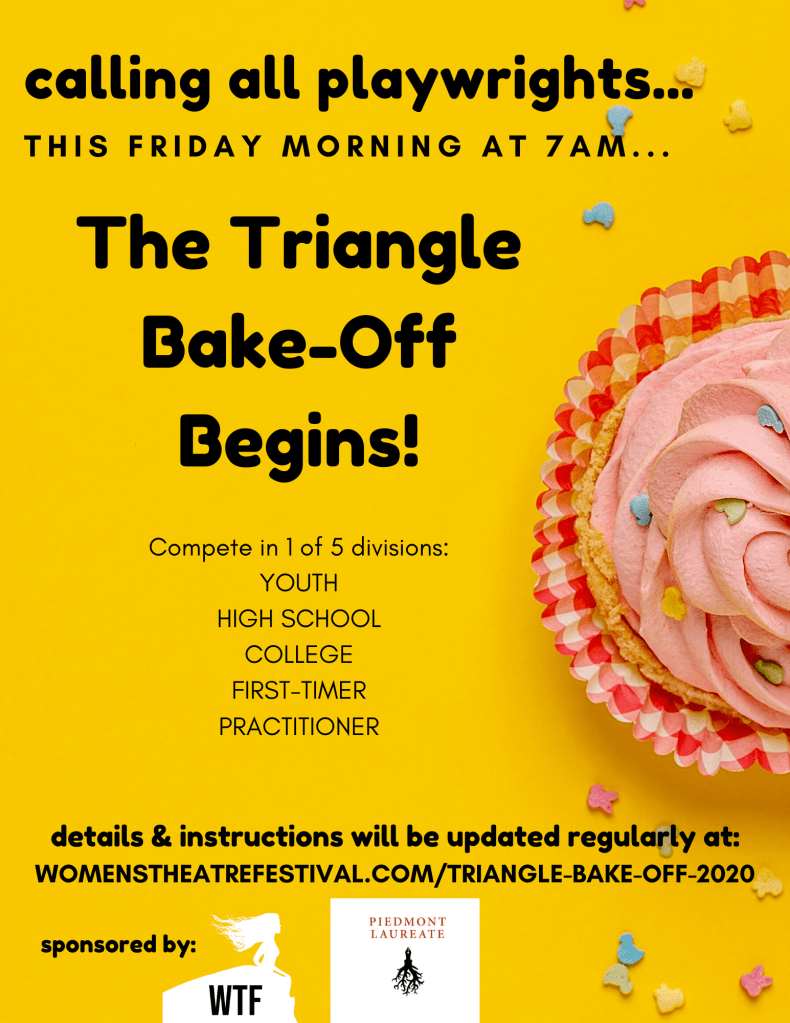 In collaboration with Tamara Kissane, the 2020 Piedmont Laureate, and local theatre artist Hayden Tyler Moses, Women’s Theatre Festival (WTF) proudly announces the Triangle Bake-Off Competition.